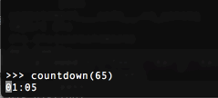 How can I create a countdown clock in Python that looks like 00:00 (min & sec) which is on a line of its own. Every time it decreases by one actual second then the old timer should be replaced on its line with a new timer that is one second lower: