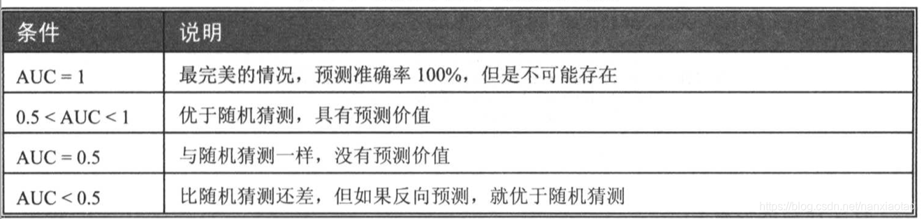 二元分类算法,通过AUC(Area under the Curve of ROC(receiver operating characteristic))进行评估