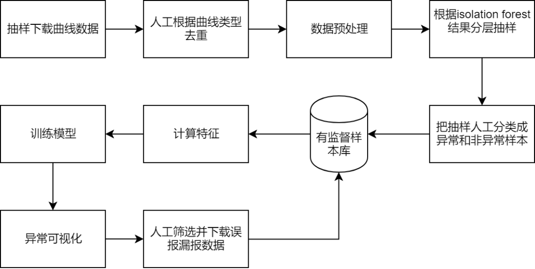 有监督样本库储存着带有标记的正常和异常样本,后续优化和维护只需要增加或者删减数据库里的数据,便可以实现模型修改迭代。