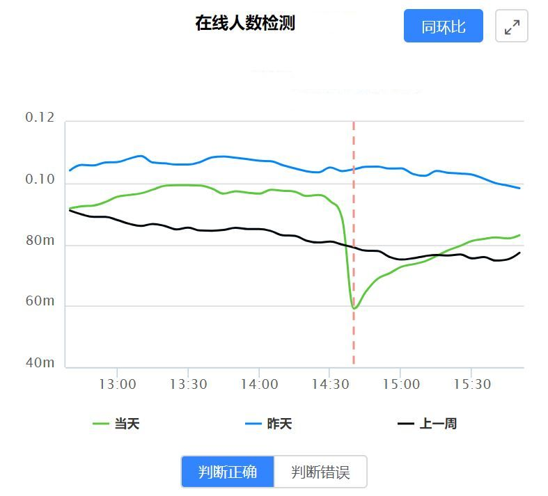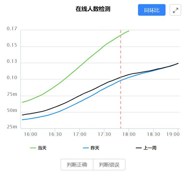 从我们的测试效果来看,无监督模型可以快速且低成本地找出异常点,但是这些异常点并不一定是业务想要的异常点。如下图,实际上我们检测的曲线并没有发生异常,无监督异常检测模型报警是因为今天的值高于昨天值和上周的值,但业务方并不认为这是异常。