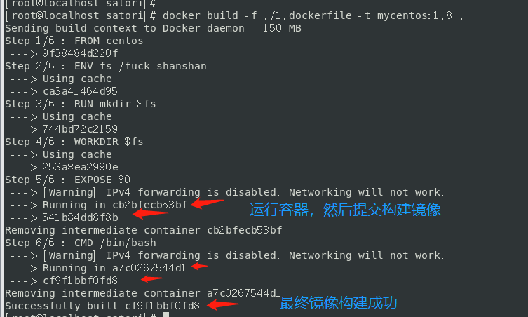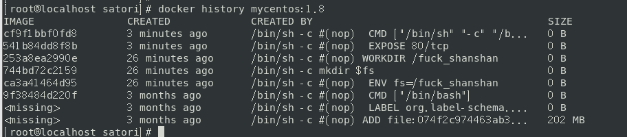 # 继承自centos FROM centos # 将/fuck_shanshan设置为环境变量,命名为fs ENV fs /fuck_shanshan # 执行命令,创建目录 RUN mkdir $fs # 指定工作区 WORKDIR $fs # 执行命令安装vim RUN yum -y install vim # 执行命令安装ifconfig RUN yum -y install net-tools # 暴露端口为80 EXPOSE 80 # 指定shell为/bin/bash CMD /bin/bash # 注意:注释不可以可指令写在同一行,像编程语言的话,可以有行内注释,但是dockerfile不可以,不能和指令写在同一行,必须单独写一行