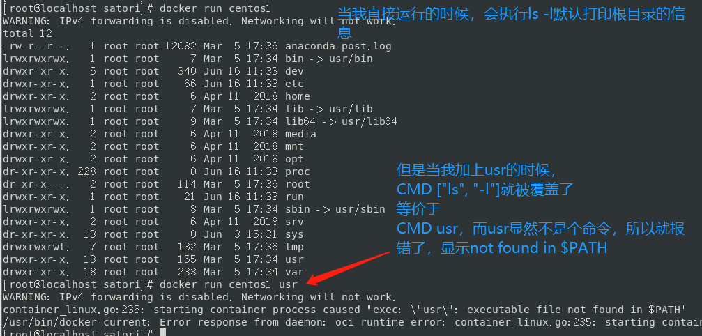 提交一个容器启动时要运行的命令 DockerFile中可以有多个CMD指令,但只有最后一个生效,CMD会被docker run -it centos之后的参数替换