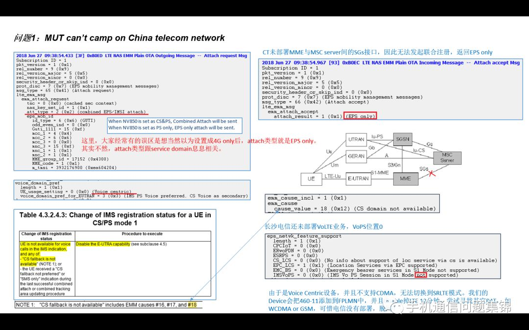 最近,我司又返回中国市场了,并且在终端不支持CDMA的情况下要求支持中国电信的LTE/VoLTE,然后场测team就报出了各种各样类似的Bug, 如下: