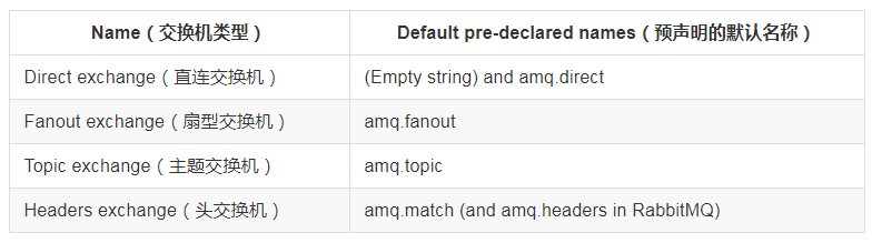 共有四种direct,fanout,topic,headers,其种headers(几乎和direct一样)不实用,可以忽略。