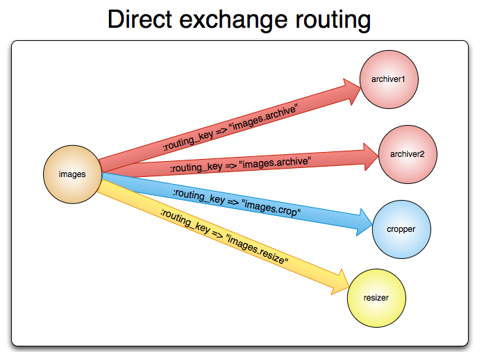 R的消息被发送给直连交换器时,交换器会把它路由给绑定值同样为R的队列。