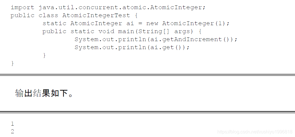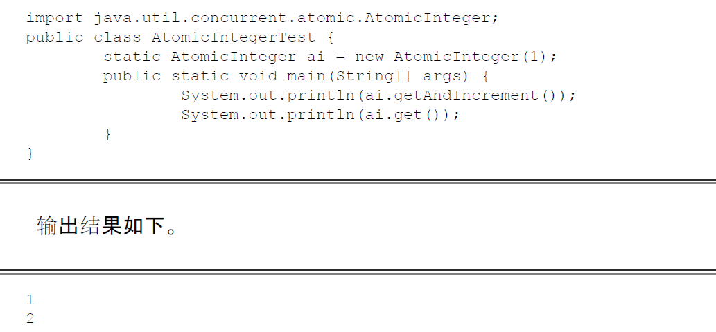 int getAndSet(int newValue) : 以原子方式设置为newValue的值,并返回旧值。 Atomiclnteger示例代码如代码清单
