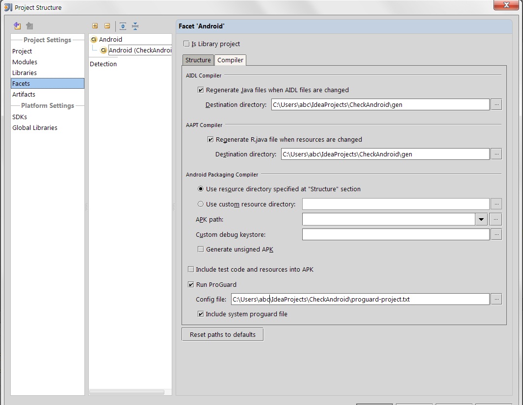 proguard.config=${sdk.dir}\tools\proguard\proguard-android.txt:proguard-project.txtin fileproject.properties. - I not sure if IntelliJ reads the