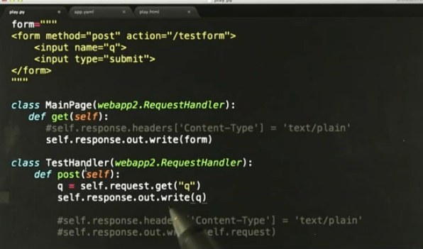 app = webapp2.WSGIApplication([('/', MainHandler), ('/rot13', Rot13Handler)],