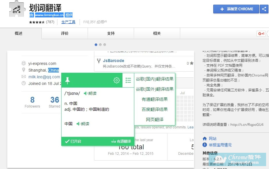 作用:网页中的英文又不懂的划一下就可以帮你翻译好,同时也可以对整个网页进行翻译