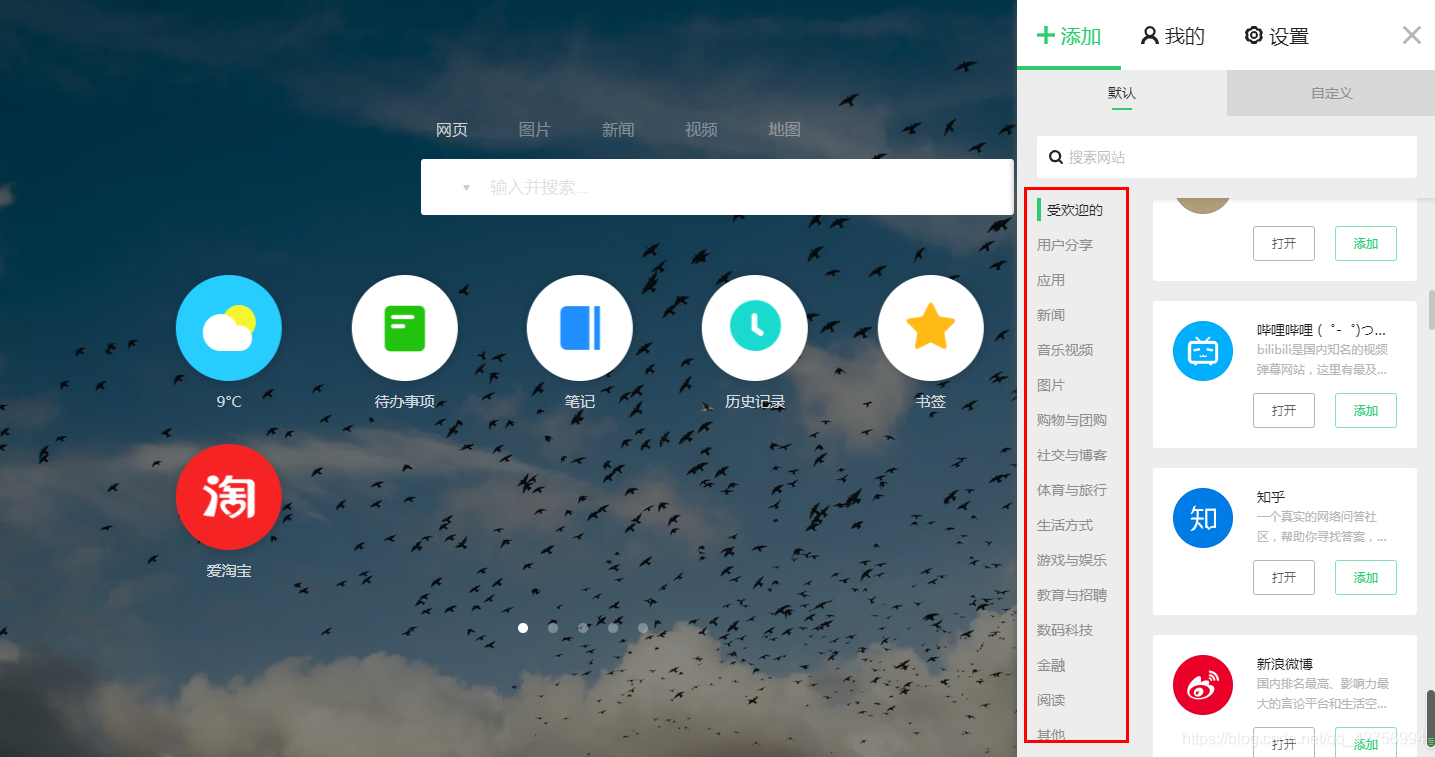 2.你可以把你常用管理你的标签页,把常用的网站设置再首页既美观又方便!