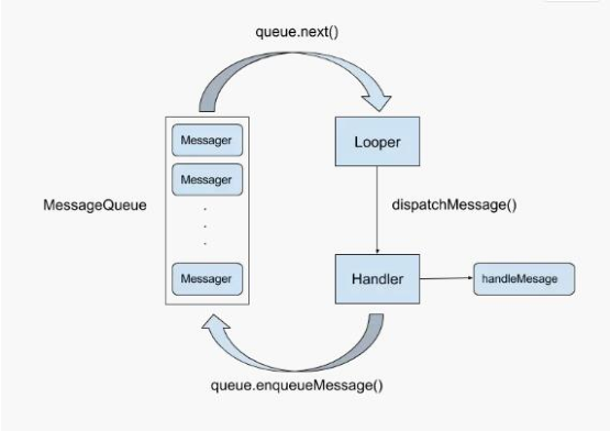 - 在主线程创建的时候会创建一个 Looper,同时也会在在Looper 内部创建一个消息队列。而在创键 Handler 的时候取出当前线程的 Looper,并通过该 Looper 对象获得消息队列,然后 Handler 在子线程中通过