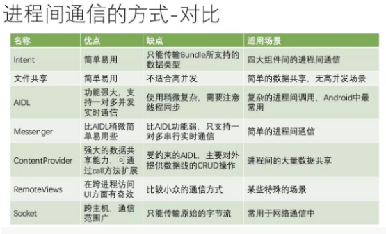 4 丶Android 中 IPC 方式、各种方式优缺点,为什么选择 Binder