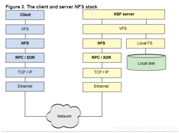 从NFS的协议栈可以看到,它事实上是一种VFS(操作系统对文件的一种抽象)实现。