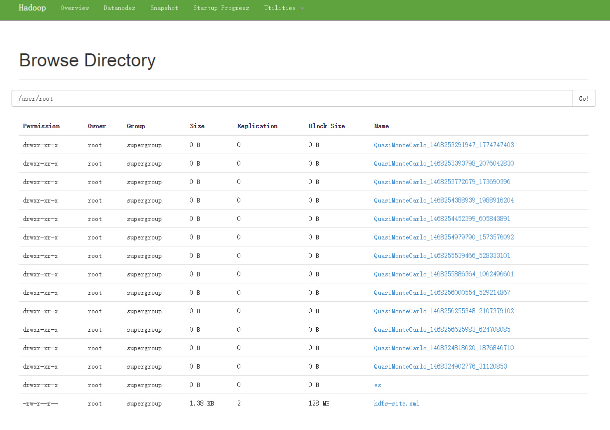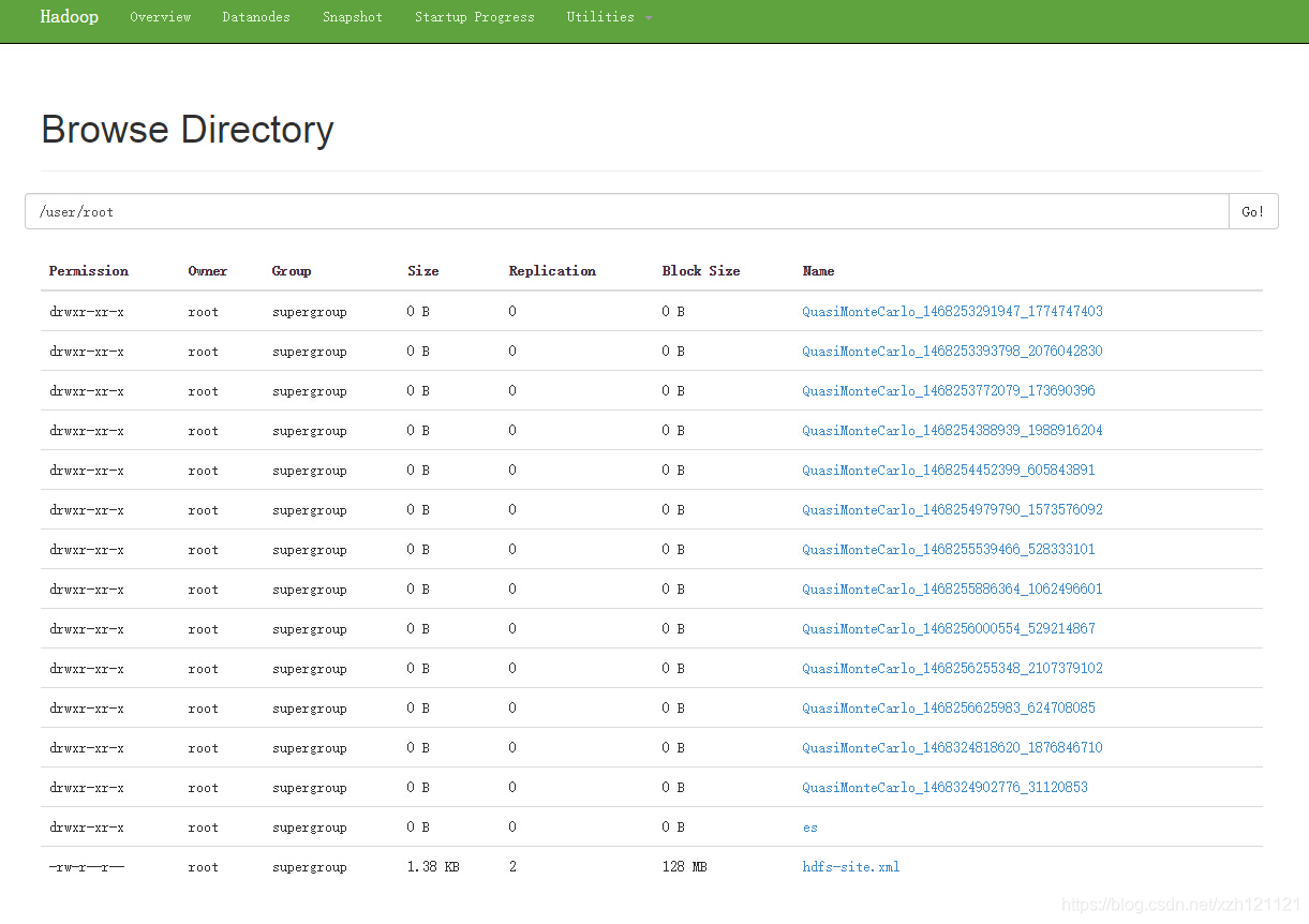 由所有者权限、文件所属的组中组员的权限、非所有者非组员的权限组成。下图表示其所有者root拥有读写权限,supergroup组的组员有读权限,其他人有读权限。
