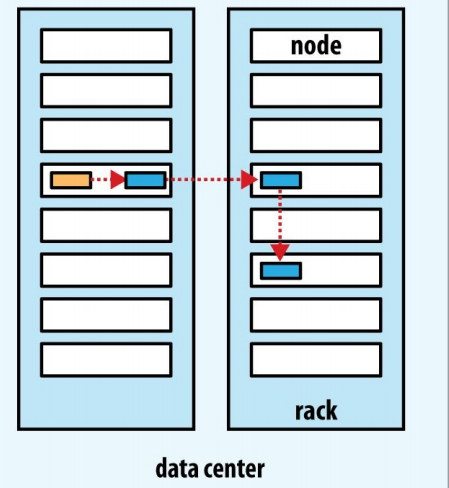 第三个副本放在跟第二个副本同一机架上,但是不同的节点上,满足条件的节点中随机选择。