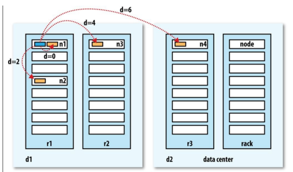 在读取和写入的过程中,namenode在分配Datanode的时候,会考虑节点之间的距离。HDFS中,距离没有