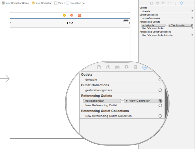 This works fine with an IBOutlet for the navigation bar.