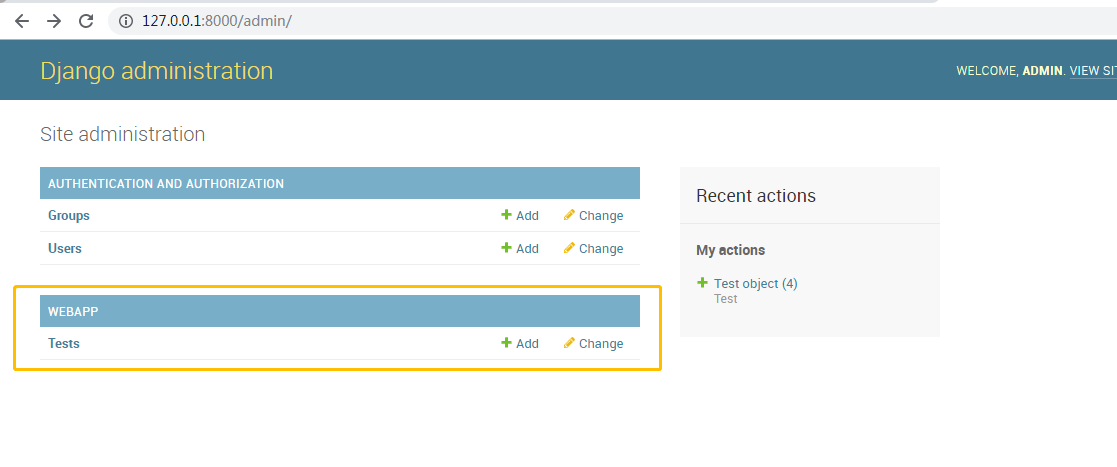 admin.site.register(Test) # 注册数据模型,register()括号里面就是你要注册的数据模型的名称