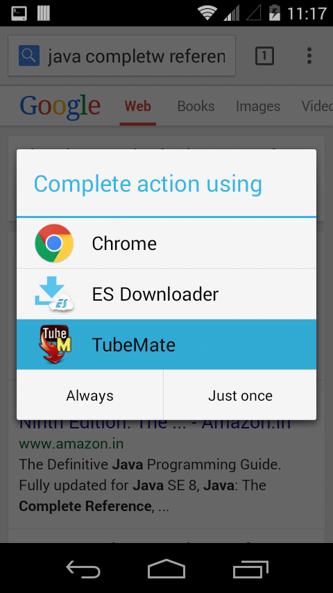 I want to download files from browser through my application. I am trying to list my app in complete action using dialog. It shows for other action like view files, etc but in case of download files it doesn't show in dialog. how can i list my app like in the image?