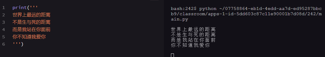 三引号不仅能输出文本内容,还可以输出文本的格式(比如:换行)简单的说,三引号的意思是:我让你输出啥样,你就输出啥样。