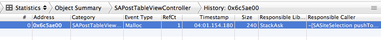 Here is what Instruments shows after pushing SAPostTableViewController just once (with only one release statement):