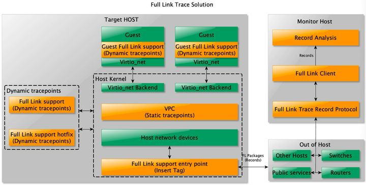 下一代虚拟网络中,除了通常的计数器统计,针对大吞吐高性能场景下性能无损的故障分析,我们研发了一套带内的流跟踪系统。