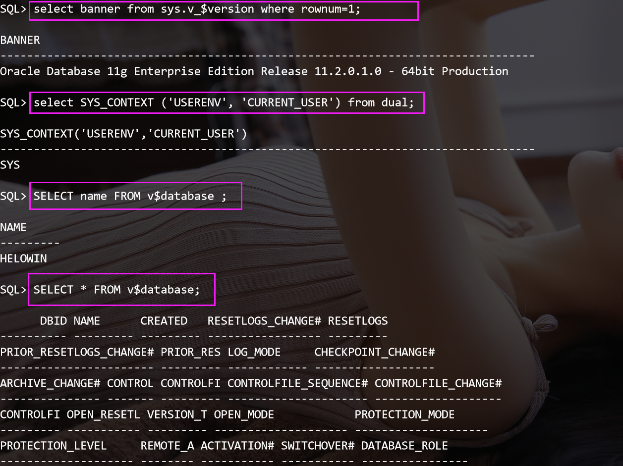 select banner from sys.v_$version where rownum=1; #查看数据库的版本信息