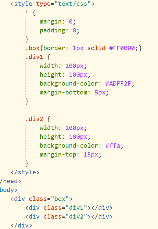 1)中间添加一个元素如a让其不相邻外边距就会使两个外边距之和