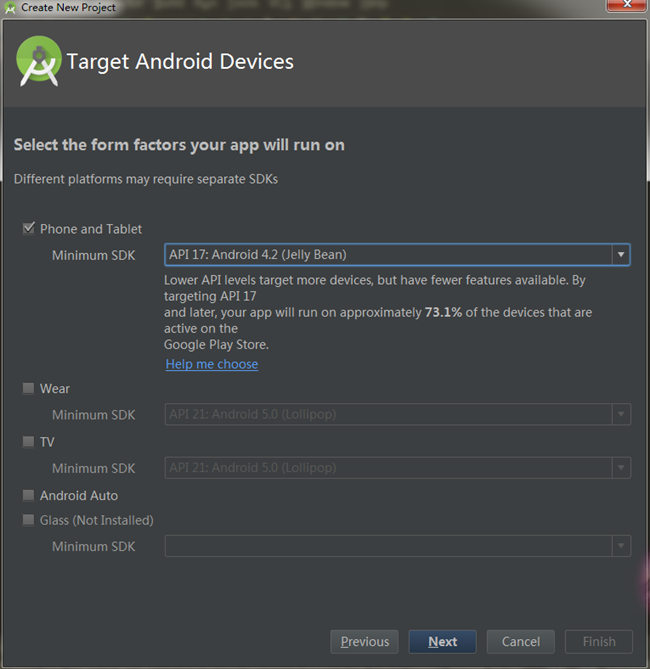 (2)next-->可以选择创建的工程的版本-->如果对版不了解,可以点击help me choose: