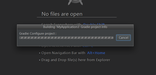 6、导入studio文件:直接用open按钮,注意gradle和build tools的版本是否一置,否则会在打开时自动下载相应的构建工具没有FQ基本就卡死了,可以在打开前去尝试修改文件。