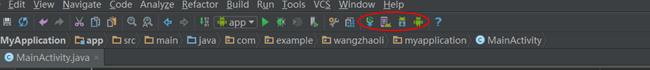 5.在Studio菜单栏的右边有这样几个常用的功能,如图分别是 Gradle同步、AVD Manager、SDK Manager、DDMS: