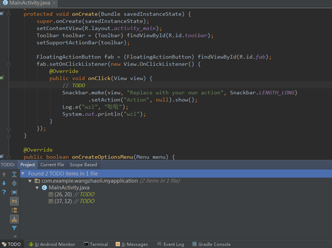 2.“TODO”视图很好的展现当前程序中的位置;