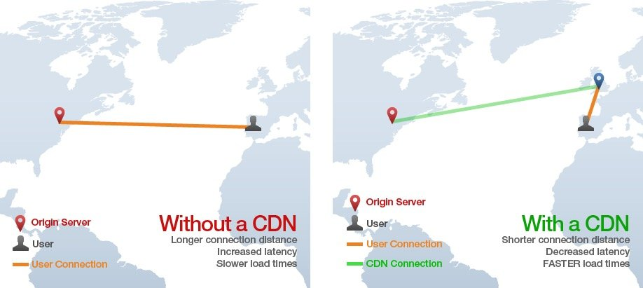 没有CDN时,需要直接请求从服务器,如果用户距离服务器很远,那就非常慢了。