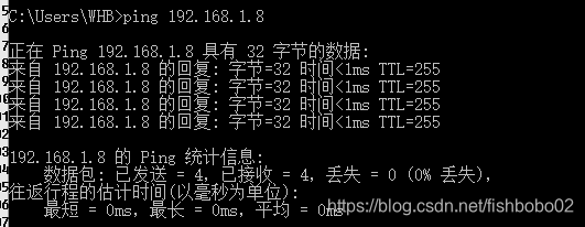 12、打开CMD命令窗口,输入 ping 192.168.1.8 回车。