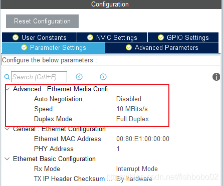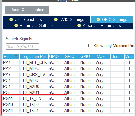 4、配置ETH。记得修改ETH_TX_EN/ETH_TXD0/ETH_TXD1三个引脚的端口映射。
