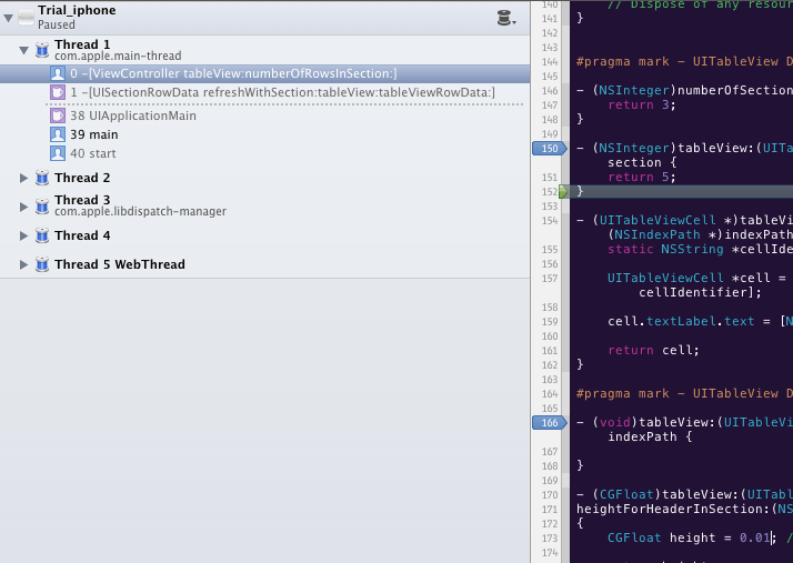 I am getting an array out of bounds error at this ridiculous index, which based on my research says that there is probably some code calling something negative such as [array objectAtIndex: -1] Problem is that this isn't my code and I cannot find it anywhere. I have put breakpoints all over the place to no avail. I am thinking it may be in a UITableView Delegate method but can't be certain. Is there anyway to access the value of all my int variables in the log. I can't NSLog them because I don't know where the crash is occurring.