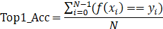 记样本xi的类别为yi,类别种类为(0,1,…,C),预测类别函数为f,则Top-1的计算方法如下: