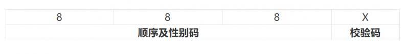 接着第十五和十六位是顺序码,具体指同一地址码所标识的区域范围内,对同年同月同日出生的(也就是前十四位完全相同)人员编订的顺序号;倒数第二位则是性别码,若男性则为奇数,女性则为偶数;而最后一位则是校验码,根据一种校验规则得到的数字,如果按照校验规则得到数字为十,则用 X 来代替。
