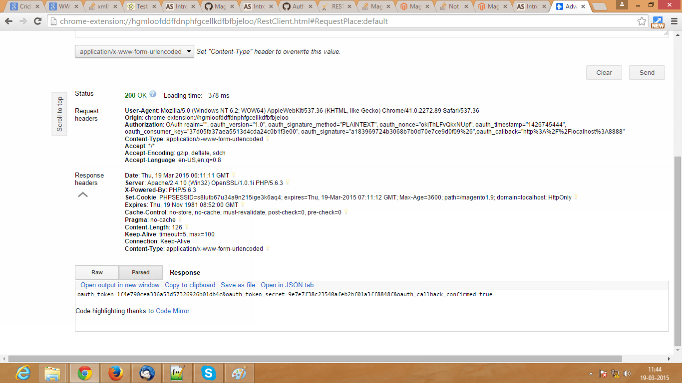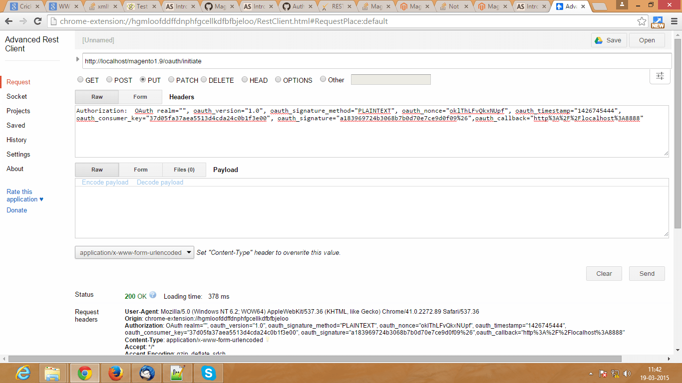 I am using Magento version 1.9.1.0 and trying to use Magento Rest APIs using OAuth Integration. I have consumer key and consumer secret. Now want to get OAuth token for Rest APIs usage. I have followed http://www.magentocommerce.com/api/rest/authentication/oauth_authentication.html