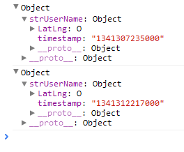 { strUserName : { timestamp : point.timestamp , LatLng : point.LatLng }, strUserName : { timestamp : point.timestamp , LatLng : point.LatLng } }