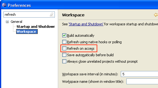 I think you need to look into the workspace re-fresh option in Eclipse ( was made available from Eclipse version 3.7.x ). You can enable it in Preferences > General > Workspace and select Refresh on access or as per need you can change to whatever setting you require.