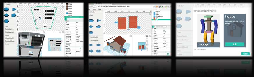 什么?兼容性问题,这些问题就交给各种框架来解决,HTML5的3D引擎非常多threejs是知名度较高的,但较臃肿大好几百k的包,什么功能都触及但都做不深入,动画引擎像玩具,做游戏引擎又缺碰撞检测,这点上不及后起之秀babylonjs,最早吸引我的是注意的是介绍babylonjs的这段话 I am a real fan of 3D development. Since I was 16, I spent all my spare time creating 3d engines with various technologies (DirectX, OpenGL, Silverlight 5, pure software, etc.). 这段话老让我郁闷的回忆自己16岁在干吗?