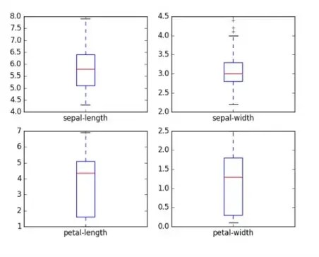 # Load dataset url = "https://archive.ics.uci.edu/ml/machine-learning-databases/iris/iris.data" names = ['sepal-length', 'sepal-width', 'petal-length', 'petal-width', 'class'] dataset = pandas.read_csv(url, names=names)