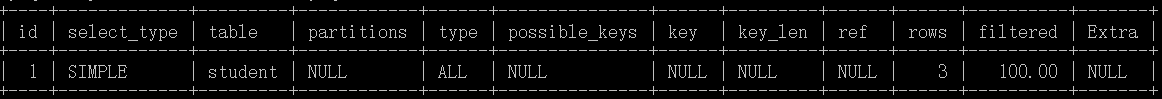 4.partitions : 代表分区表中的命中情况,非分区表,该项为null(mysql5.7新增)