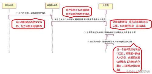 动态代理功能实现说明,我们利用javaAgent和ASM字节码技术开发java探针工具,实现原理如下: