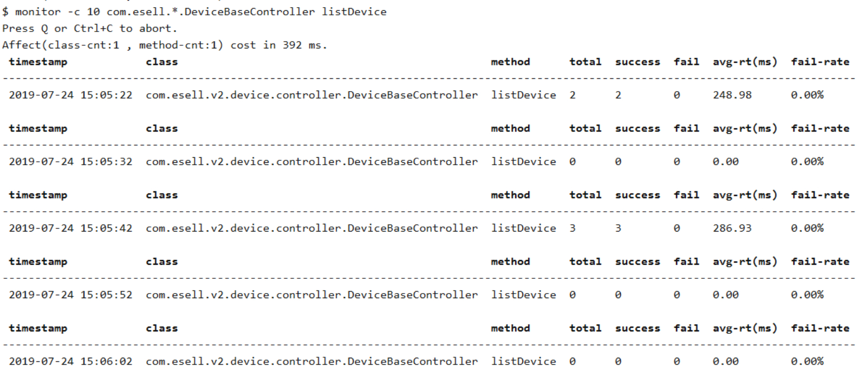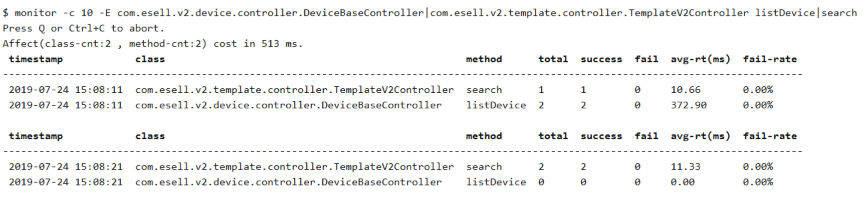 $ watch -E com.esell.v2.device.controller.DeviceBaseController|com.esell.v2.template.controller.TemplateV2Controller listDevice|search 'params[0].payload' -x 3