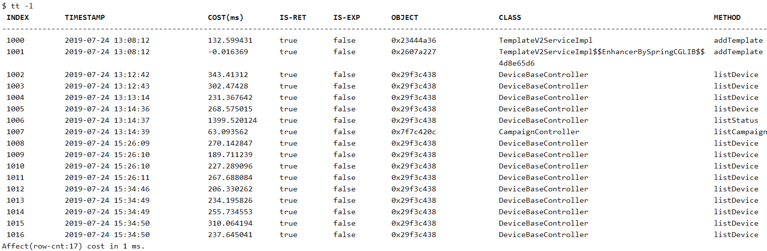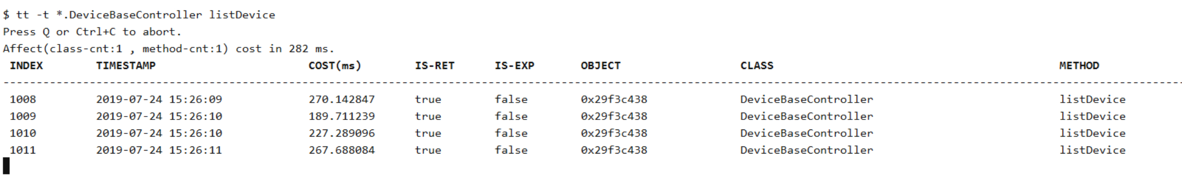 tt -t *.DeviceBaseController listDevice