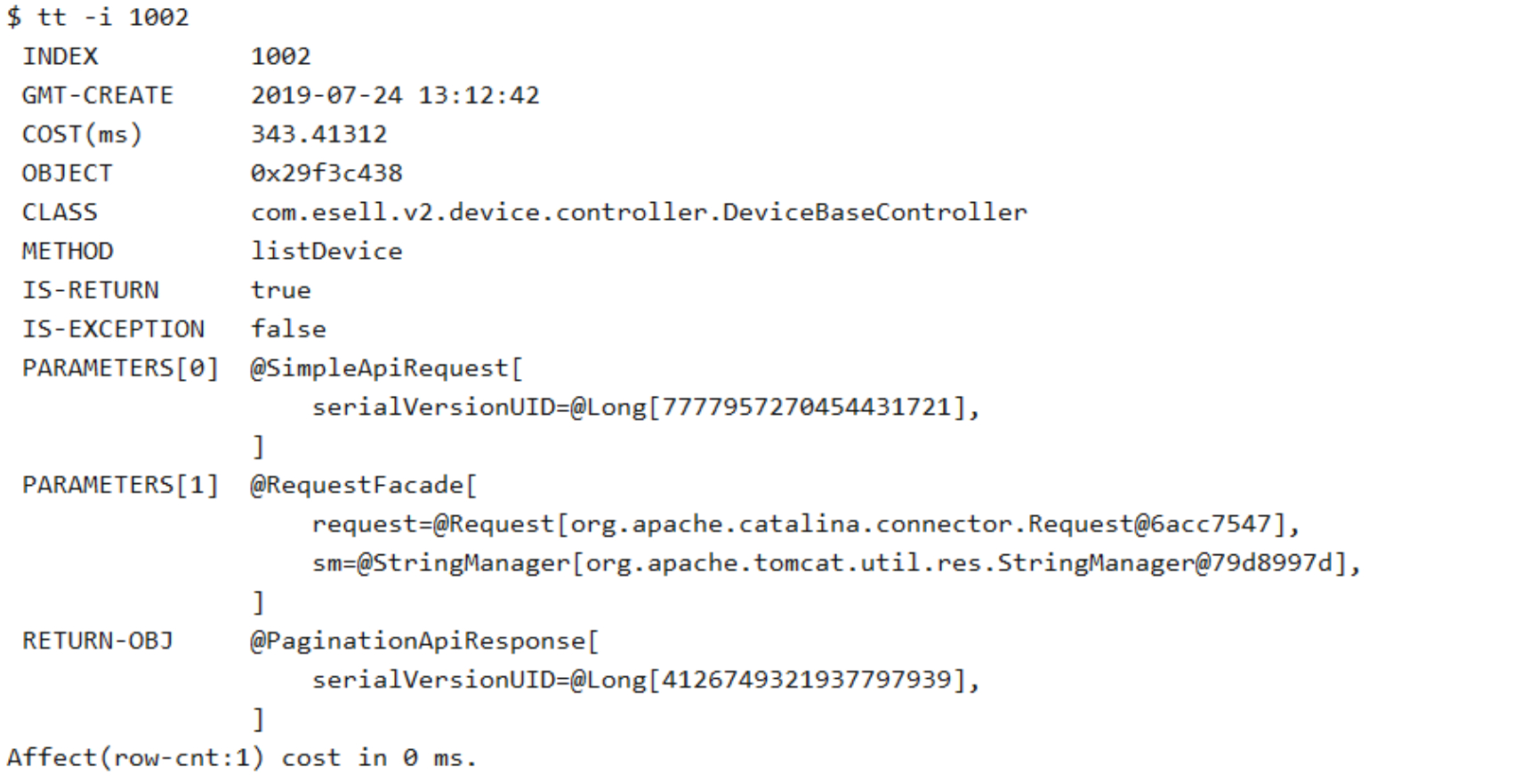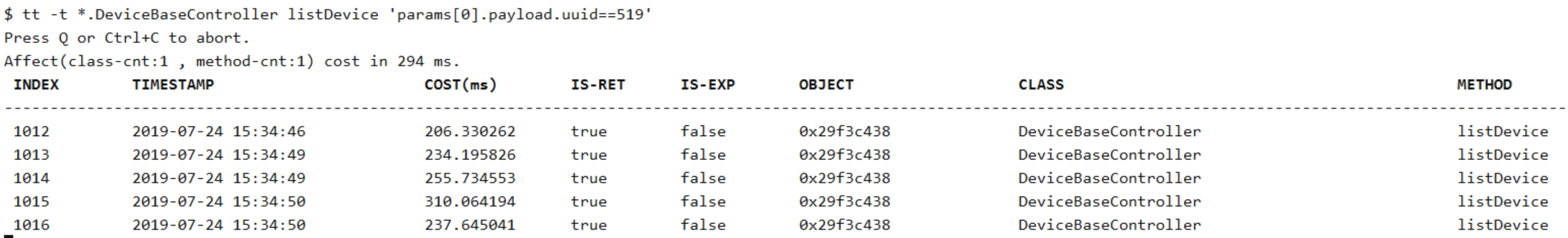 tt -t *.DeviceBaseController listDevice 'params[0].payload.uuid==519'