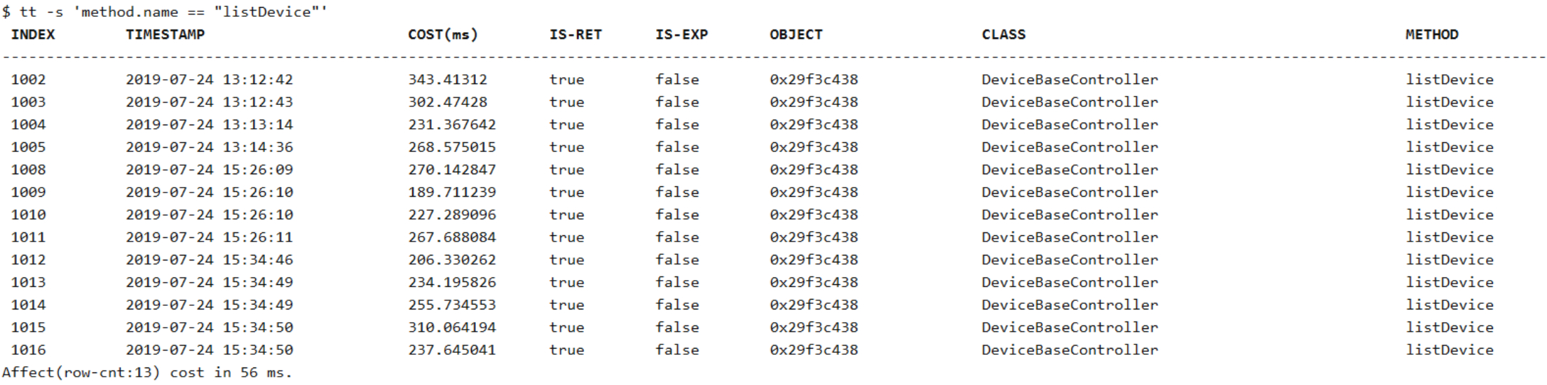 tt -s 'method.name == "listDevice"'
