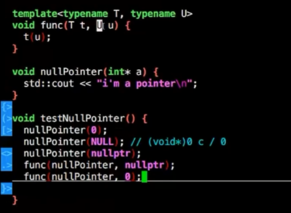 nullptr C++11引入空指针主要用于定义模板类时和0的区别